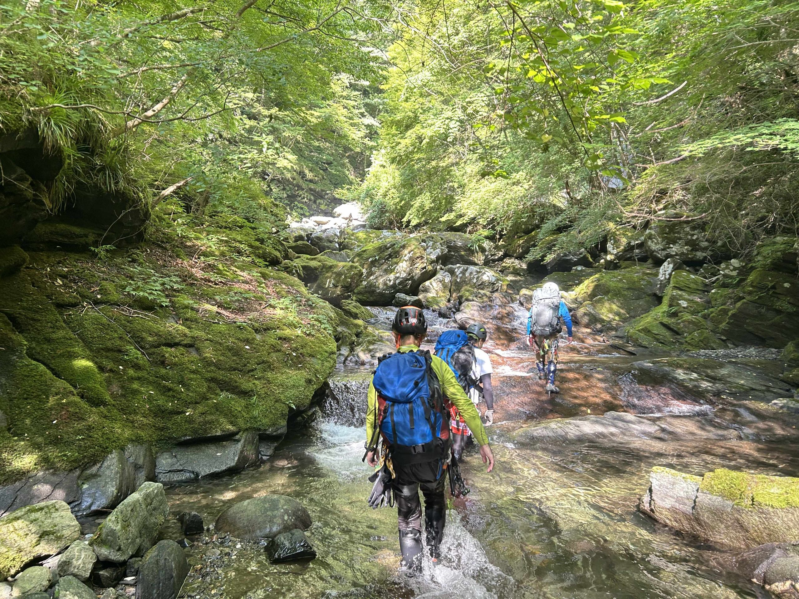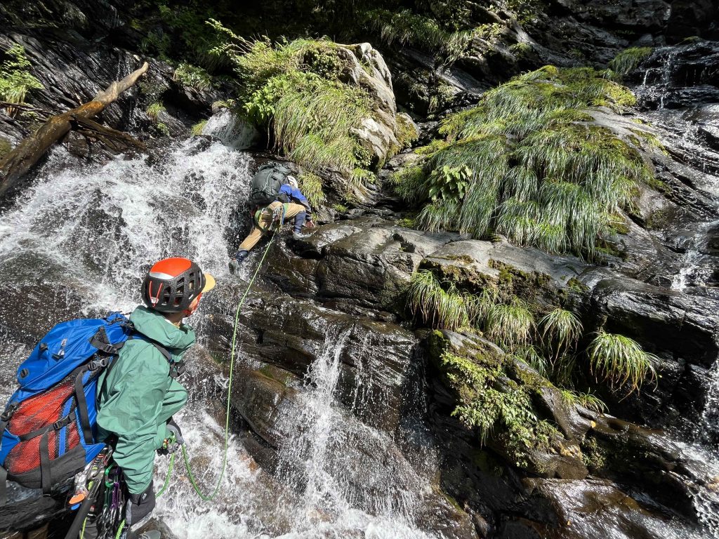 今回は前回巻いて登った八間滝を登ることができ、一同達成感のある沢登りが出来ました🎶実は滝行のような場面が有り、大変でした。
